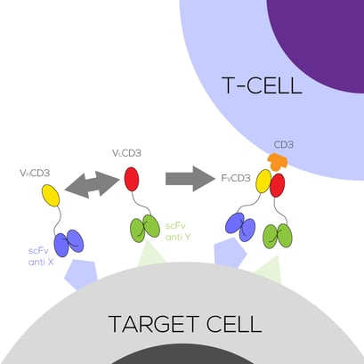This is achieved by the combination of two complementary antibody fragments (Hemibodies) which assemble “on target” and thus specifically tag tumor cells for lysis by the patient’s killer T-cells. While distinct hemibody-combinations against certain tumor types have already been identified, the platform is continuously expanding.